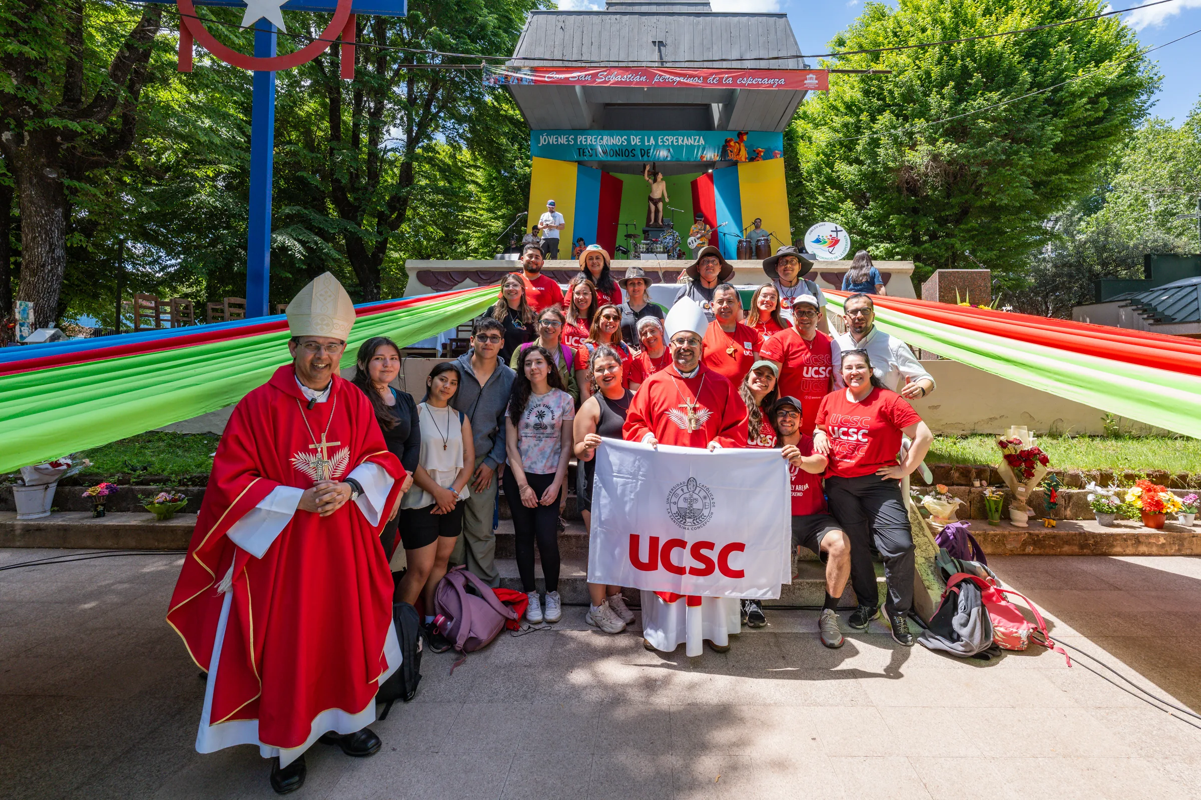 Una vez en el Santuario, la peregrinación culminó con la Celebración de la Eucaristía, donde se invitó a los presentes a ser testigos activos de esperanza en sus entornos familiares, universitarios y sociales. Durante la homilía del Gran Canciller UCSC y Arzobispo de Concepción, Monseñor Sergio Pérez de Arce, se destacó la importancia de “caminar juntos, acompañarnos y cuidar la fe de quienes están a nuestro lado”.
